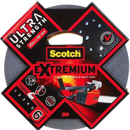 Scotch® Extremium™ ULTRA High Performance Duct Tape (25 m x 48 mm) is twice as thick as other Scotch® duct tapes, offering maximum holding strength for the toughest jobs. As well as being ultra-strong, it’s water-resistant and UV-resistant, while being easy to tear by hand.