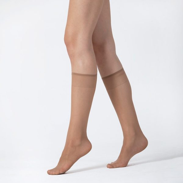 Ελαστικά καλτσάκια μέχρι το γόνατο 15 DEN. Ξεχωρίζουν για: • To φαρδύ λάστιχο που δεν σφίγγει το πόδι • Την ενισχυμένη μύτη για περισσότερη ανθεκτικότητα Μεγέθη: One size Χρώμα:  Μελί.
