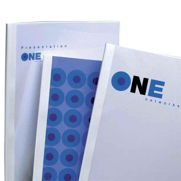 ThermaBind® Covers offer a stylish and permanent finish, with a transparent PVC 150 micron cover and 240 gsm silk white back cover. The spine creates totally secure, beautifully bound documents that are great for presentation, filing or mailing. A4, 1.5mm. Pack size: 100.