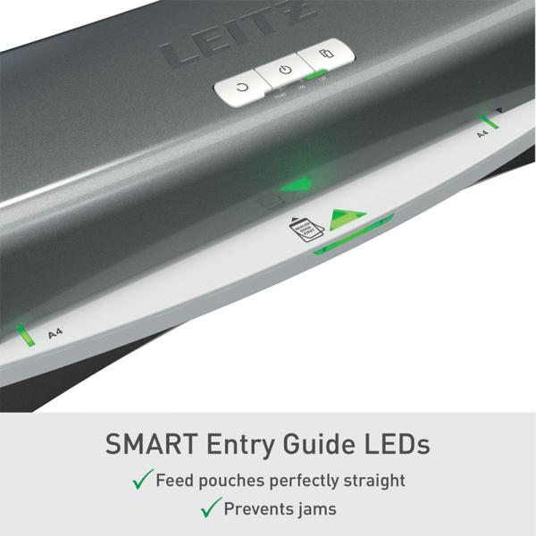 • SMART entry guide LEDs: ensure pouches feed straight through the laminator to prevent jams.