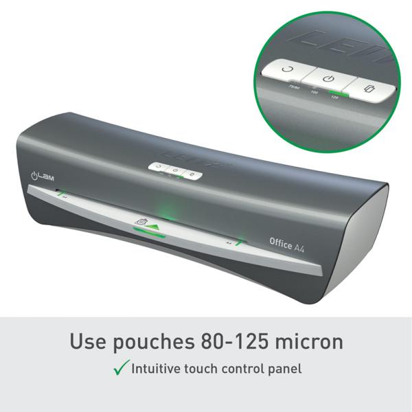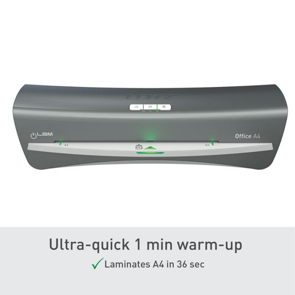 • Laminates an 80-micron A4 document in approximately 36 seconds.